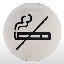 Samoprzylepne znaki informacyjne greenteQ; ze stali nierdzewnej szczotkowanej, matowej; do zastosowania na gładkich powierzchniach wewnątrz i na zewnątrz budynków.