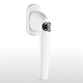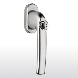 Klamka okienna greenteQ FG10.S100.AL, zgodna z klasyfikacją normy 100 Nm DIN EV 1627-1630 (WK 1-6), zamykana na klucz, z wciskaną wkładką bębenkową; skok klamki 90°; niewidoczne mocowanie klamki; wykonana z aluminium anodowanego lub powlekanego kolorem; 1 klucz oraz wkręty w komplecie.