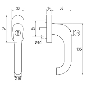 greenteQ Window handle FG60.SG200.ER for windows that open inwards; 200 Nm turn resistance certified in accordance with DIN EN 13126-3; Lockable with pressure cylinder in the handle part, keyed alike with two keys; with 90° catch; Concealed screw connection; Matt brushed stainless steel; Incl. screws and square spindles.